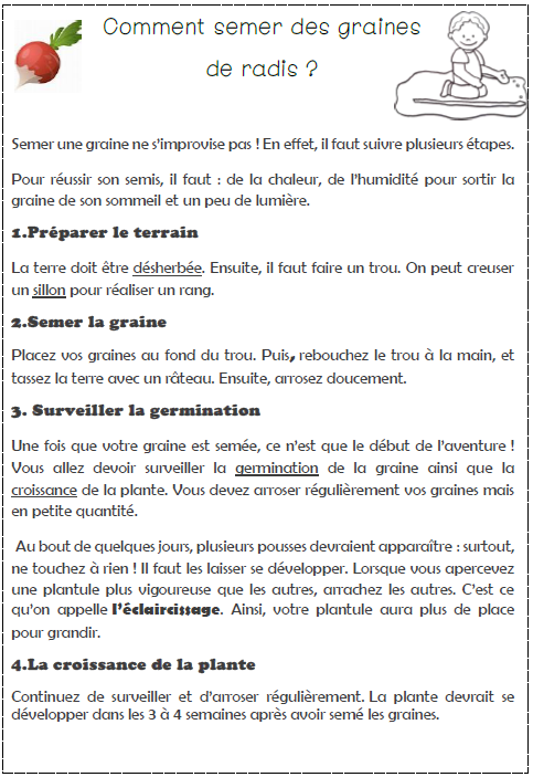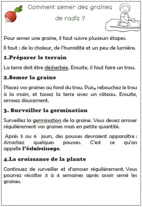 Nous avons réalisé des expériences pour faire germer des graines et maintenant nous allons passer à la pratique dans le jardin. Pour cela voici: